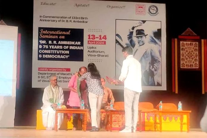 নতুন বছরের প্রথম দিনই জিন্স ও রঙিন পোশাক পরে কয়েক জন পড়ুয়ার অতিথি বরণ নিয়ে ‘বিতর্ক’ শুরু হল বিশ্বভারতীতে। ঘটনাটি ঘটেছে রবিবার বিশ্বভারতী লিপিকা প্রেক্ষাগৃহে বাবাসাহেব ভীমরাও অম্বেডকর জন্মদিন উপলক্ষে আয়োজিত অনুষ্ঠানে। এই অনুষ্ঠানে উপস্থিতি ছিলে বিশ্বভারতীর ভারপ্রাপ্ত উপাচার্য সঞ্জয়কুমার মল্লিক-সহ বেশ কয়েক জন অতিথি।