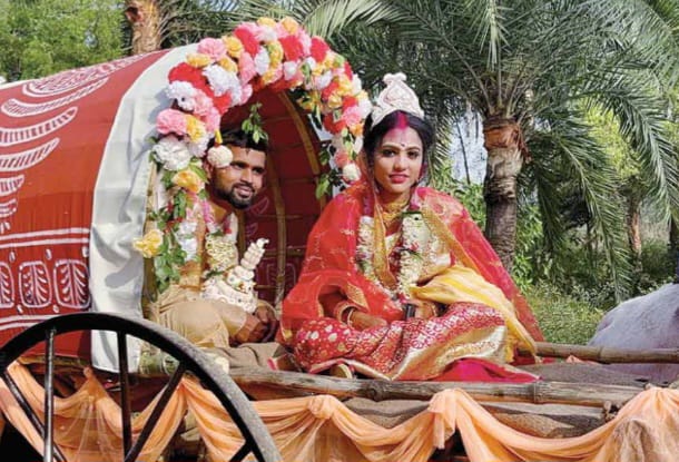 ‘বিবাহ’ শব্দটা মানুষের জীবনে খুবই গুরুত্বপূর্ণ। মানুষ নানাভাবে সেই ‘বিবাহ’কে স্মরণীয় করে রাখতে চায়। এবার আর পালকি বা ঘোরার গাড়ি নয়, বিয়ে বাড়িতে ফিরে আসলো মধ্য যুগের গোরুর গাড়ি। জানা গিয়েছে, গ্রামবাংলার পুরাতন প্রথা ধরে রাখতেই এমনই সিদ্ধান্ত নেন নব দম্পতি। বোলপুরের আলবাঁধা-সর্পলেহনা গ্রাম পঞ্চায়েতের রতনপুর গ্রামের বাসিন্দা রাখি দাস ও গোবিন্দাবালা গ্রামের মঙ্গল ভাণ্ডারী বিবাহবন্ধনে আবদ্ধ হন। দুজনের বাড়ির দূরত্ব মাত্র দুকিলোমিটার। তবে বর্তমানে শহর সংলগ্ন গ্রাম আর গঞ্জ নেই। ফিরেছে শহুরে সংস্কৃতি। বিয়ের অনুষ্ঠানে কখনও কখনও দেখা যায় কেউ বিয়ে করতে যাচ্ছেন পুরনো দিনের পালকিতে চড়ে। কিন্তু তারা এলেন গোরুর গাড়ি করে – যা একদম অভিনব বলেই মনে করা হচ্ছে।