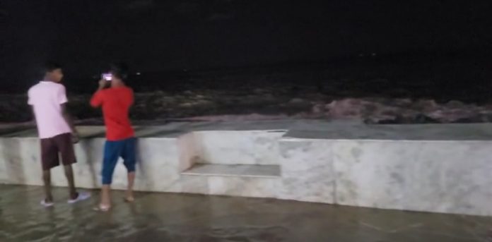 দীঘায় পূর্ণিমায় প্রবল ঢেউ, গার্ডওয়াল টপকে জল এলো রাস্তায়