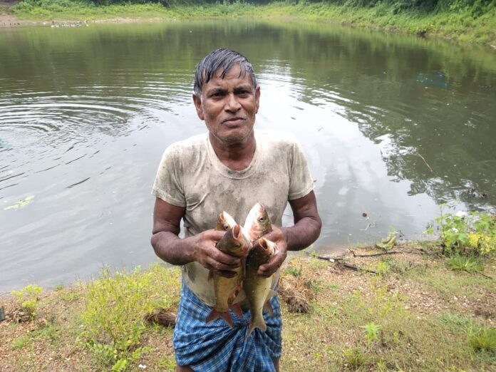 বাঁকুড়া জেলার খাতড়া ব্লকের অন্তর্গত বৈদ্যনাথপুর গ্রামের বরিষ্ঠ কৃষক নারায়ণ কর্মকার। দুই সদস্য বিশিষ্ট পরিবারটির জীবিকা কৃষি ও মৎস্য চাষের উপর নির্ভরশীল। নারায়ণ বাবু দীর্ঘ ২০ বছর ধরে মাছ চাষের সাথে যুক্ত। নারায়ণ বাবুর বর্তমানে দুটি পুকুরে মূলতঃ মিষ্টি জলের মাছ চাষ হয়, একটি ৯ বিঘা, অপরটি ৬ বিঘা। নারায়ণ বাবু ২০২১ সালে একটি গ্রামীণ সচেতনতা শিবিরের মাধ্যমে রিলায়েন্স ফাউন্ডেশন এর হেল্পলাইন নম্বর সহ বিভিন্ন জীবিকা সংক্রান্ত প্রশিক্ষণের কথা জানতে পারেন।