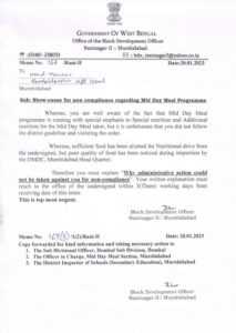 স্কুলে মিড ডে মিল দেওয়ার ক্ষেত্রে সরকারি নির্দেশ অমান্য করায় শোকজ করা হল স্কুলের প্রধান শিক্ষককে।