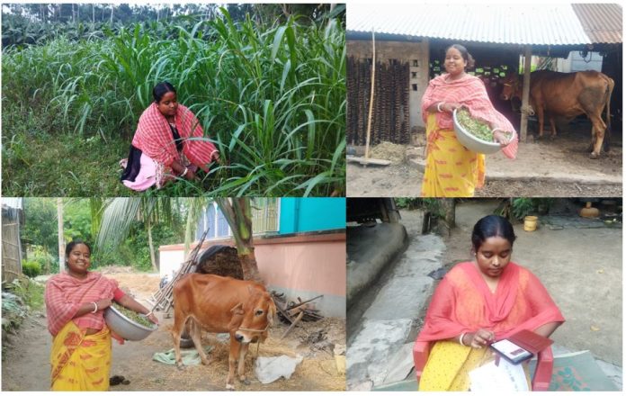 The Turning Point The intervention by Reliance Foundation was the catalyst that changed Bithika’s life. Through various virtual services like programs, including voice massage, WhatsApp groups, helplines, livestock camps, and training sessions on Napier grass cultivation and scientific cow feeding practices, Bithika gained invaluable knowledge. She learned how to grow Napier grass on vacant lands and river banks and how to prepare nutritious feed from vegetable peels and flower waste.